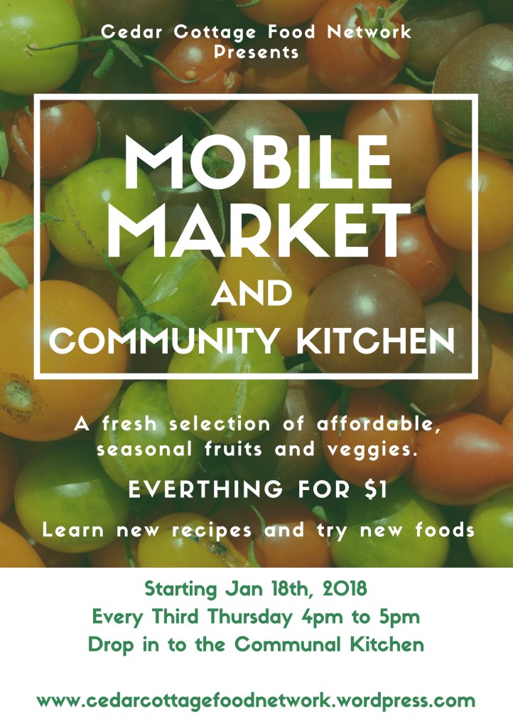 Our New Market with a Community Kitchen is located at 395 Kingsway (at 12th ave) at Biltmore Housing.