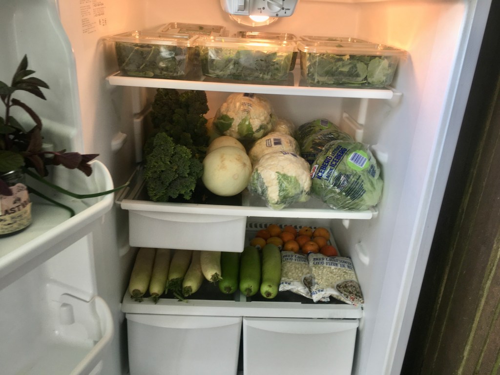 Photo by Linda Lee, a volunteer who has stocked this community pantry on Victoria Dr with excess produce.
