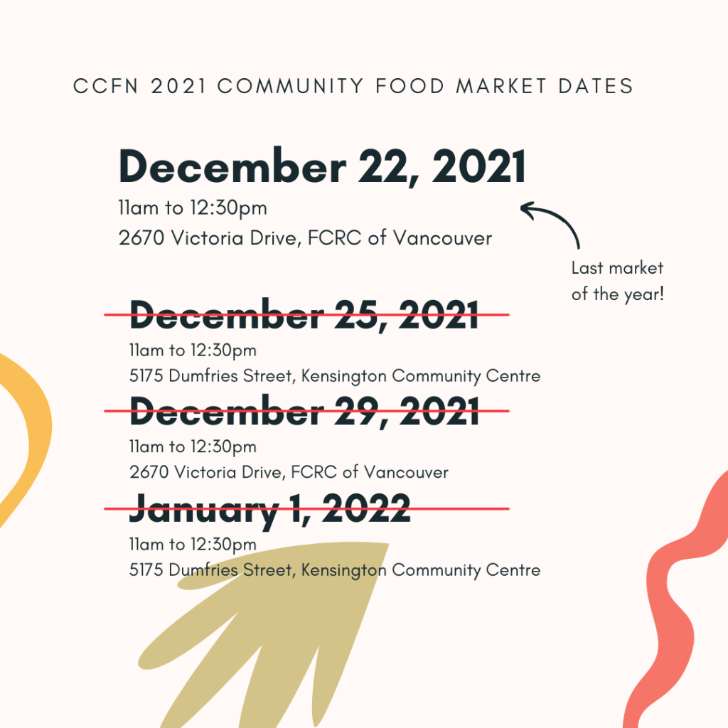 As for our Community Food Market taking place tomorrow, at First Christian Reformed Church of Vancouver, it will be the last market of the year as we shift to the Produce Box Pickup for the new year.
