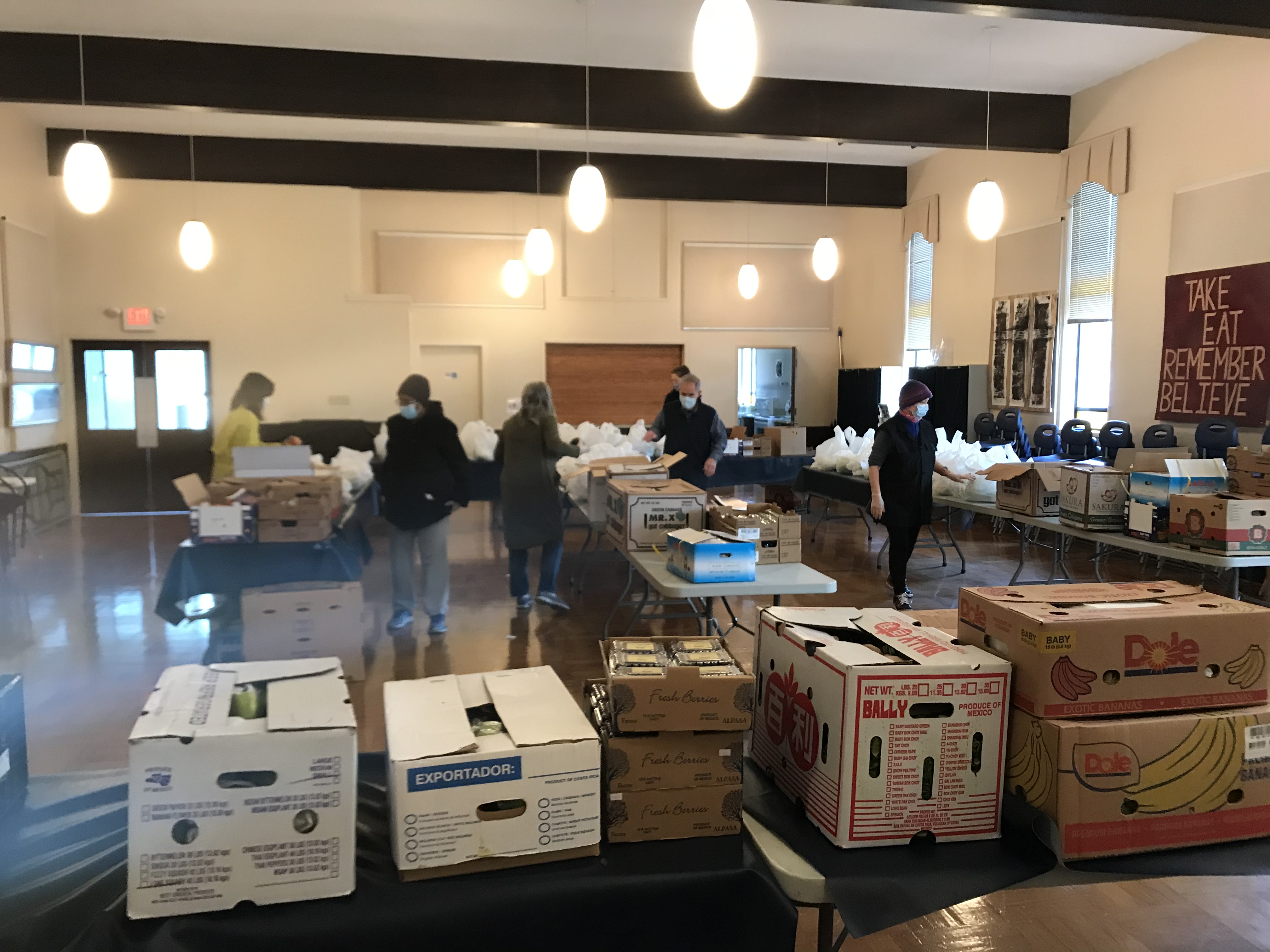 What: Lifting up to 40 lb, packing produce into bags, sorting food for community members